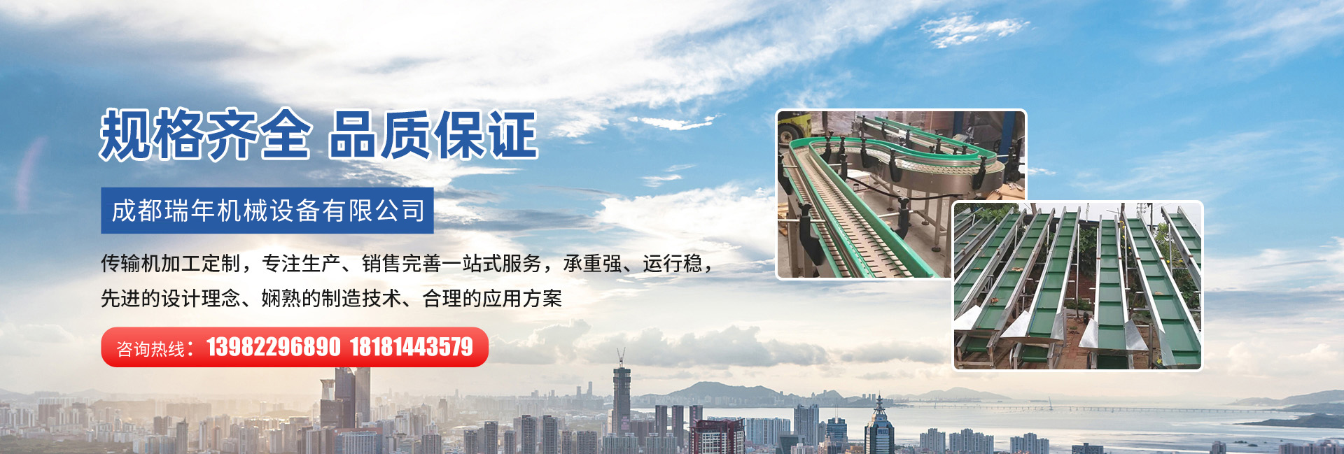 成都瑞年機械設備有限公司一家在中國自動化機械設備領域專業化生產廠家。公司專業于為客戶提供全方位的物流自動化系統解決方案。在以往的經營業績中,產品成功的應用于家電、食品、醫藥、五金制品、電控設備、通訊器材、儀器儀表、汽車制造業、電子資訊產業、摩托車、鋁型材、家具、玩具、家用電器、炊具、體育用品、各行業的小五金件及塑料件等行業,公司主要產品有各種皮帶輸送機、不銹鋼視頻生產線、滾筒輸送機、汽車線束生產線、老化檢測線、板鏈線、差速鏈、臺車線、懸掛鏈線、烘干輸送機、烘箱、水簾柜粉末涂裝吸塵設備、標準倉儲貨架等。